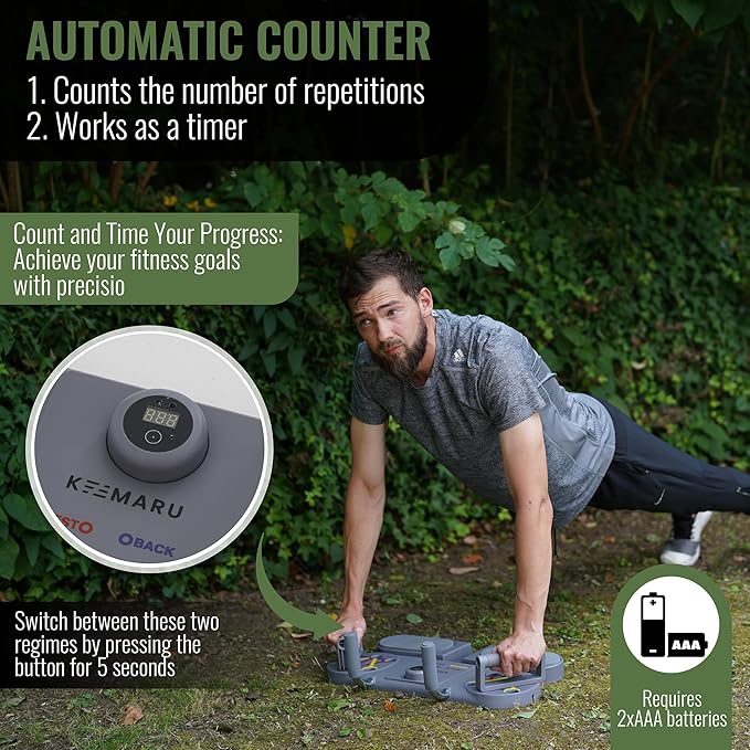 - REPETITION COUNTER: Take the guesswork out of your fitness routine with the built-in auto-counter. Keep track of your progress effortlessly and stay motivated to reach your fitness goals. The autocounter can be used to track time or the number of repetitions. You can easily switch between the regimes when needed. 2x AAA batteries are needed for the autocounter and to be purchased separately due to import regulations