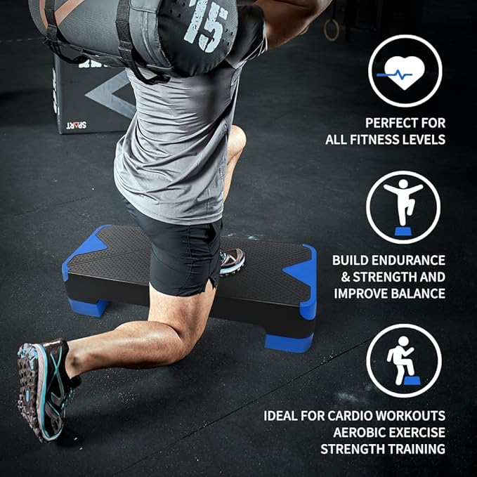 - 🔝【Multifunctional Aerobic Stepper】Perfect for aerobic workouts, cardio and HIIT. You can perform planks, crossovers, burpee jumps, knee up, dips and more on SPART aerobic stepper to boost your muscle, burn calories, lose weight and improve cardiovascular. Just step to healthy life.