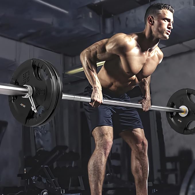 - 💪UPGRADE MATERIAL: The quality of our rubber weight plates are durable and sturdy. It is safer and more practical to drop and lower after a lift exercise. The comfortable grip also give you a good use experience.