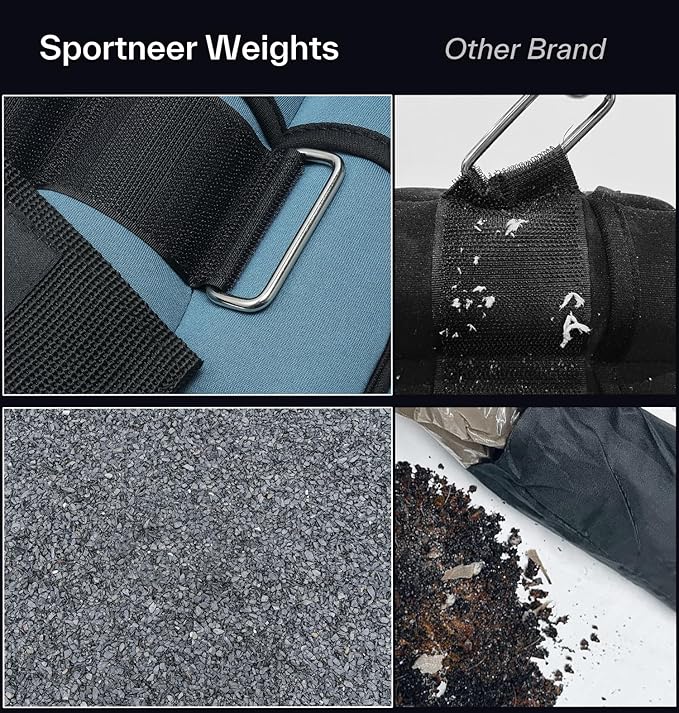 - QUALITY & COMFORT: The Sportneer leg weights are made of neoprene exterior, reinforced stitching, and sturdy outer trim. You could feel their softness when holding them in your hands.