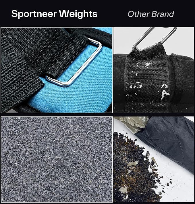 - QUALITY & COMFORT: The Sportneer leg weights are made of neoprene exterior, reinforced stitching, and sturdy outer trim. You could feel their softness when holding them in your hands.