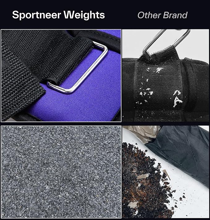 - QUALITY & COMFORT: The Sportneer leg weights are made of neoprene exterior, reinforced stitching, and sturdy outer trim. You could feel their softness when holding them in your hands.