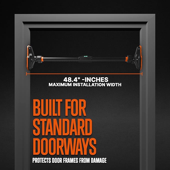 - 37 - 56 INCH ADJUSTABLE PULL-UP BAR: Our pull-up bar has steel pipe reinforcement and enlarged Anti-Skid blocks that protect doors from damage. Adjustable from 37 to 56 inches, no drilling required, and a large contact area for high resistance