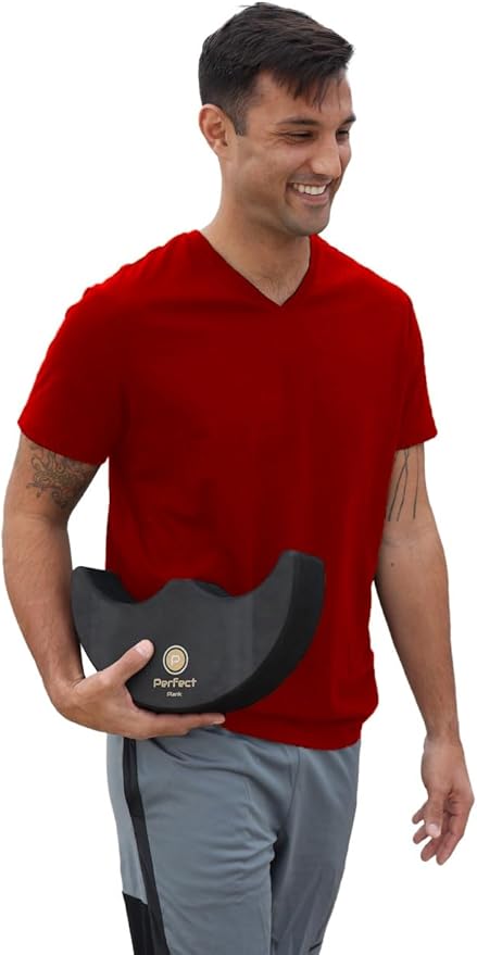 - Style : The Perfect Plank Core Trainer embodies a sleek, minimalist aesthetic with its matte black finish, designed to blend seamlessly with any home gym or workout space. Crafted from durable, lightweight foam, it offers both functionality and modern style. The rounded bottom enhances the challenge of your planks, while the ergonomic grooves on top are thoughtfully designed to cradle your legs and ankles, ensuring both comfort and stability during intense workouts. Its compact and streamlined design makes it a sophisticated yet practical addition to any fitness routine. The Perfect Plank Core Trainer embodies a sleek, minimalist aesthetic with its matte black finish, designed to blend seamlessly with any home gym or workout space. Crafted f… See more