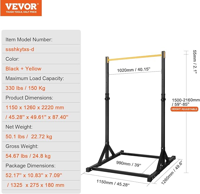 - Enhanced Sturdiness and Stability: VEVOR power tower dip station is constructed from rust-resistant carbon steel, featuring a powder-coated surface for lasting durability. With a weight capacity of up to 330lbs, reinforced steel pipes, and a stable H-shaped base with non-slip feet, it ensures steady and secure workouts.