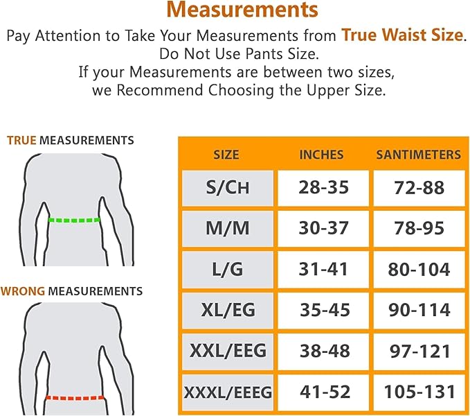 - PROFESSIONAL CUSTOMER SERVICE - We will assist you DURING 12 MONTH after the date of purchasing. You can contact us if you have any issues with size to get a replacement. PAY ATTENTION TO TAKE YOUR MEASUREMENTS FROM TRUE WAIST SIZE. DO NOT USE PANTS SIZE.