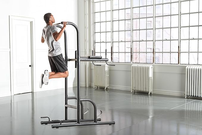 - Push-up and Dip Stations; Lock in your form for a high-powered upper body workout at the 2-station design; target triceps and activate large muscle groups in upper and core regions of the body