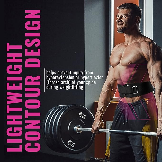 - DESIGNED FOR OPTIMAL COMFORT AND FUNCTION: With its lightweight contoured design, our weightlifting belt helps prevent injury from hyperextension or hyperflexion (forced arch) of your spine during weightlifting. By offering support to your abdominal wall and your lumbar vertebrae, this lifting belt promotes safe lifting technique for Back Squats, Power Cleans, Deadlifts, Clean and Jerks, Overhead Squats and even heavy lifting at work or at home.