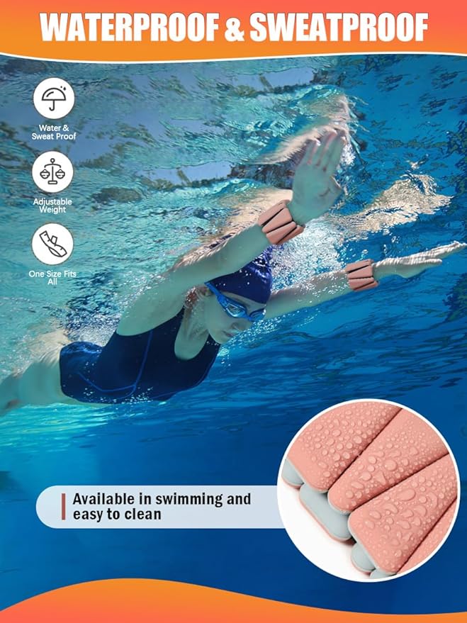 - WATERPROOF & SWEAT-PROOF: The surface of this ankle weights is made of all-inclusive silicone layer which is soft and skin friendly. The waterproof and sweat-proof design makes it easy to clean and odor free.