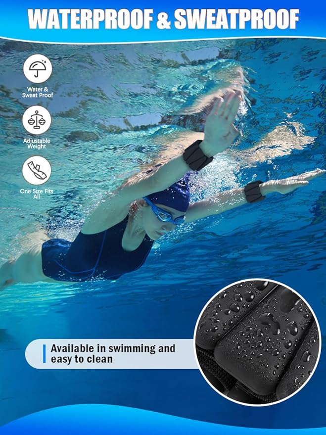 - WATERPROOF & SWEAT-PROOF: The surface of this ankle weights is made of all-inclusive silicone layer which is soft and skin friendly. The waterproof and sweat-proof design makes it easy to clean and odor free.