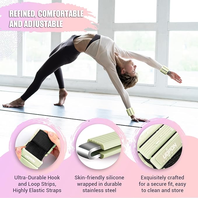 - [KEEP MOVING, STAY HEALTHY] The Pilates wrist and ankle are crafted with skin-friendly silicone-wrapped premium stainless steel, Durable and sweat-proof, washable and reusable. This weighted bracelet features adjustable elastic straps and heavy-duty hook-and-loop strips to deliver a customized, comfortable fit for your wrists or ankles. Whether you're headed to the gym or running daily errands, it provides perfect comfort and unrestricted movement.