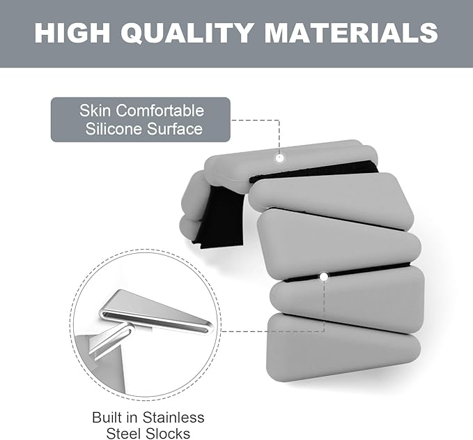 - EXCELLENT QUALITY: Our adjustable wrist weights sets made of durable and comfortable silicone material, sweat proof, odor proof. Triangle alternating design can make it bend freely, and the stainless steel material inside can ensure enough exercise load under the premise of free bending.