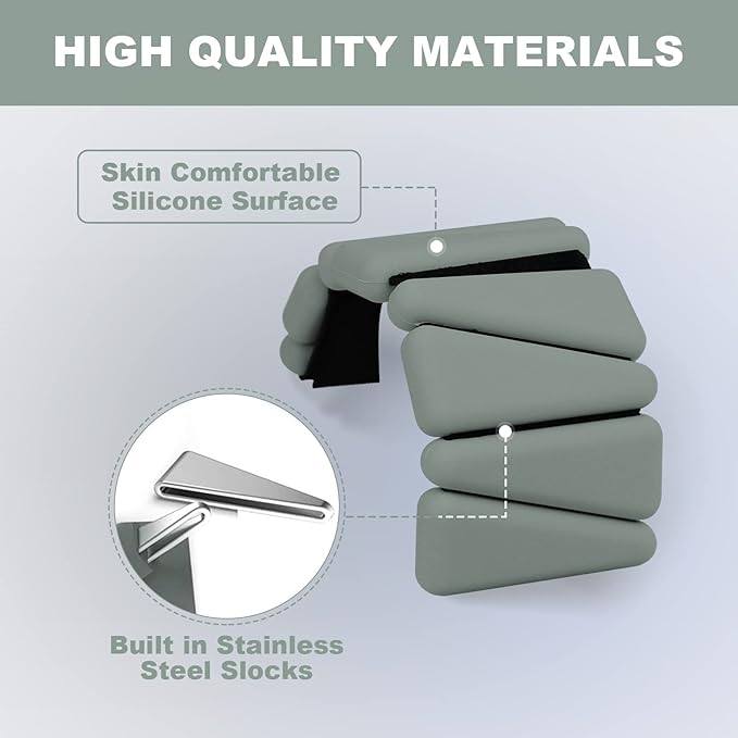 - EXCELLENT QUALITY: Our adjustable wrist weights sets made of durable and comfortable silicone material, sweat proof, odor proof. Triangle alternating design can make it bend freely, and the stainless steel material inside can ensure enough exercise load under the premise of free bending.