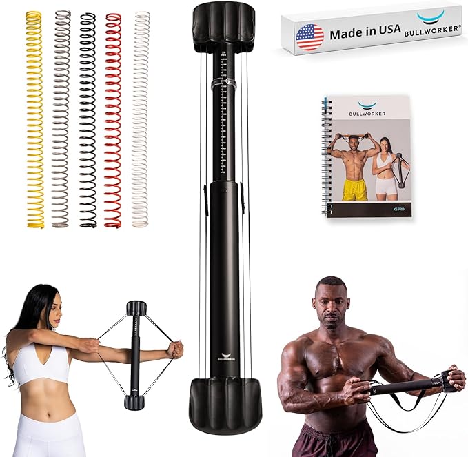 - Made in USA - Excellent Craftsmanship - Laser-etched aluminum construction, coated springs and ergonomic handles ensure smooth workouts. Plus, Bullworker at home gym equipment includes workout routines, exercise breakdowns, and a carry case for on-the-go training