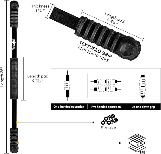 - STABLE FOR HIGH FREQUENCY VIBRATIONS: Built from robust elastic fiberglass to maximize duration when bending this shake weight stick; also equipped with TPE weighted at both ends to offer significant resistance to challenge upper muscles harder, improve strength and toning,